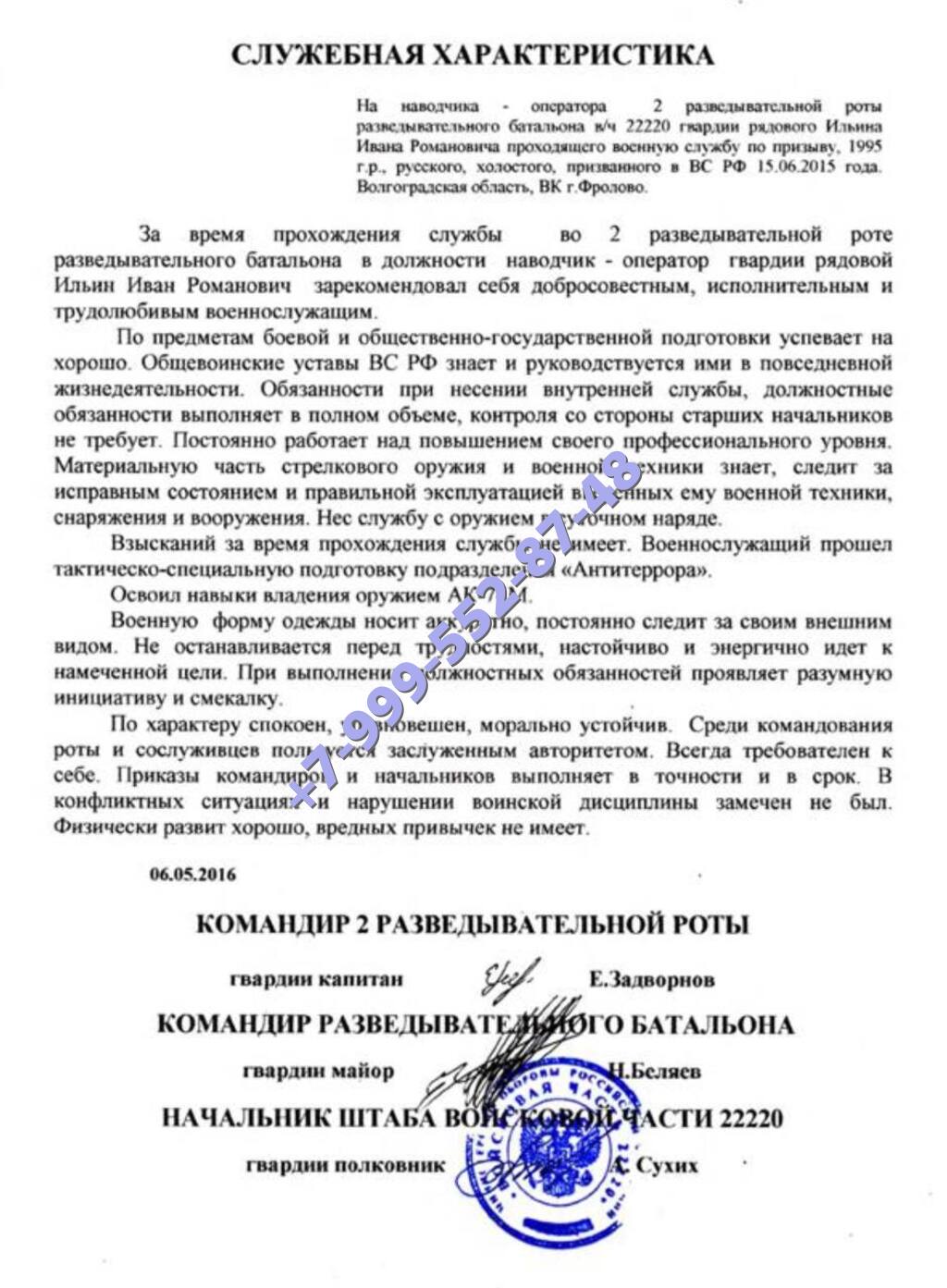 Личная характеристика с места службы на фирменном бланке воинской части/иного ведомства: от 10000 до 25000 руб + доставка.